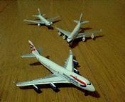 チョコエッグの旅客機シリーズをチマチマ集め気味。西日本は去年発売されたようだけど、東日本は今売ってます。この写真、ちょっと(いや随分)色悪いけど、ブリティッシュ・エアウェイズとキャセイパシフィック。やっぱりKLMが欲しくなる(笑