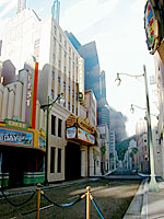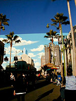 | HOLLYWOOD PICTURES BACKLOT 「ハリウッドピクチャー・バックロット」。見ての通り描かれた空が途中まで。本当の空の方が真っ青! |